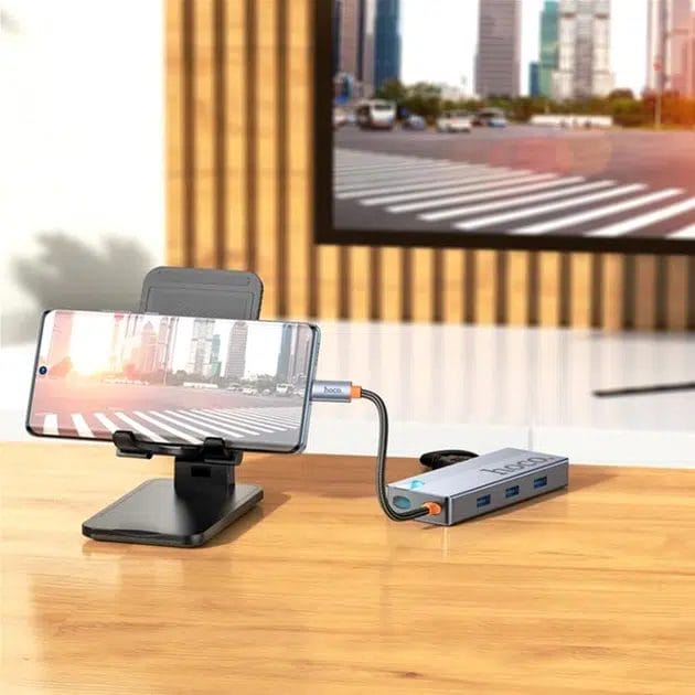 L’adaptateur multifonction Hoco 5 en 1 HB50 est la solution idéale pour connecter et alimenter vos appareils en toute simplicité. Conçu en alliage d’aluminium et acrylique, il combine élégance, robustesse et performance. Avec ses multiples ports (HDTV, PD et 3x USB 3.0), il répond aux besoins des professionnels comme des particuliers à la recherche de polyvalence et de rapidité.