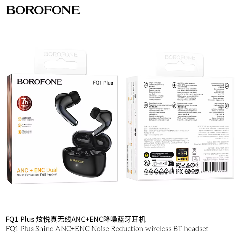 Mots-clés SEO : écouteurs sans fil, BOROFONE FQ1 Plus ANC, Bluetooth 5.4, suppression active du bruit, ANC, ENC HD appel, TWS, charge rapide, faible latence, audio de haute qualité.