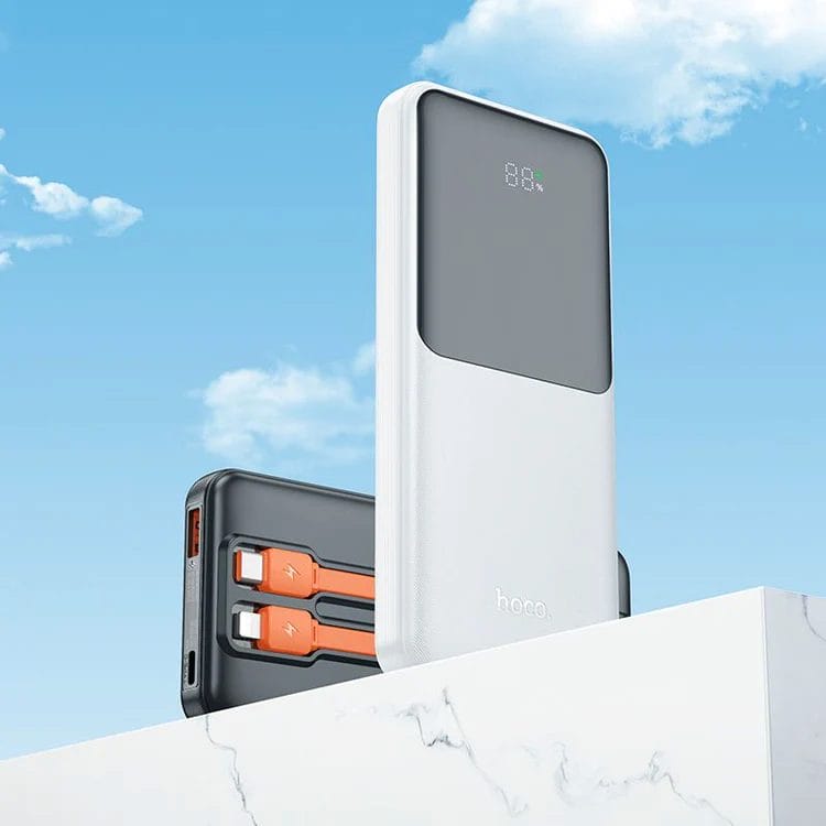 La Power Bank J119 HOCO est une solution de recharge complète pour les utilisateurs exigeants. Grâce à sa capacité de 10 000 mAh, elle vous permet de rester connecté en toutes circonstances. Compacte, performante et pratique, elle intègre deux câbles : Lightning et Type-C. Vous n’avez donc plus besoin de transporter des câbles séparés.